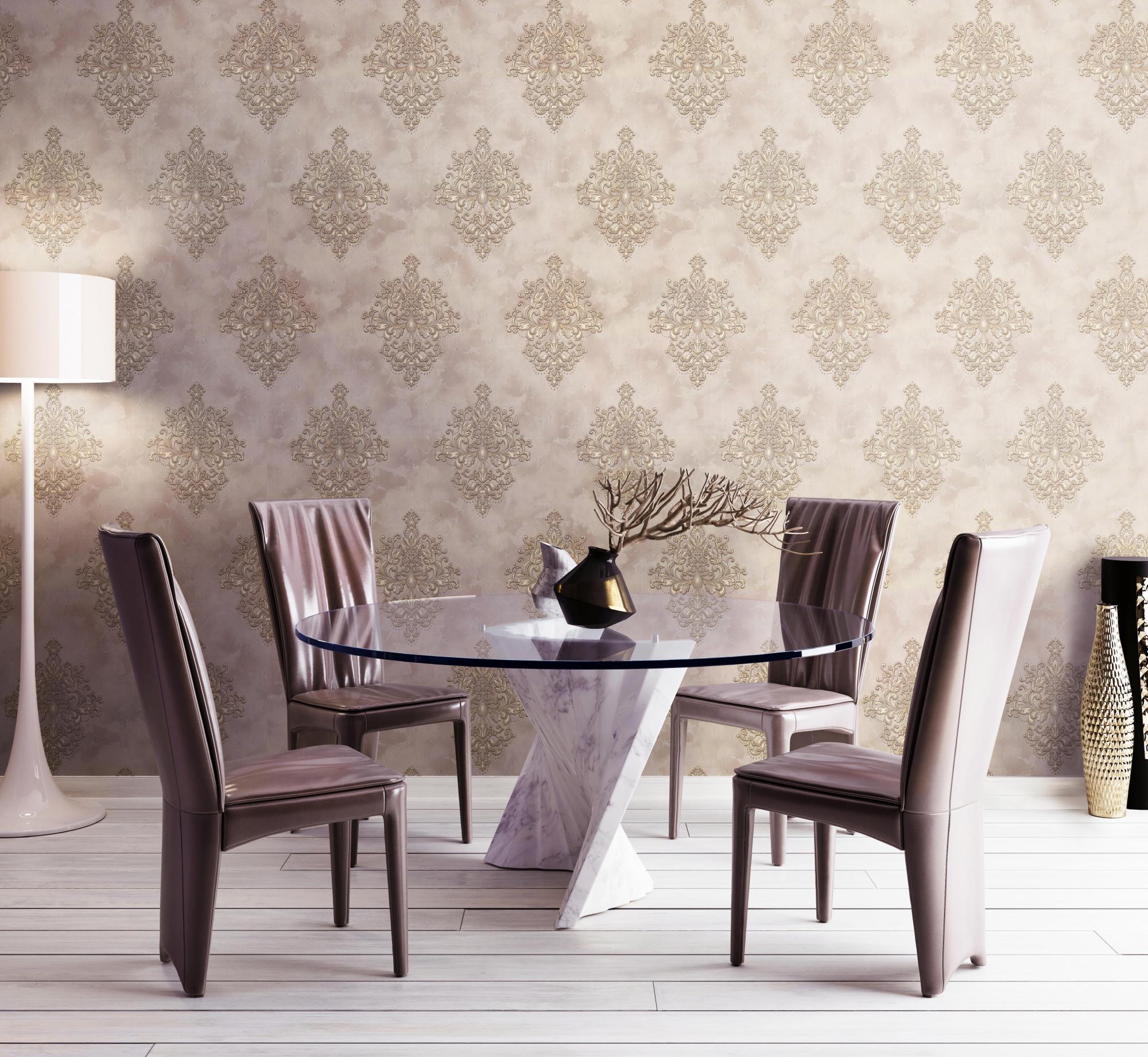 Современный дамаск на основном мотиве придется по вкусу любителям классических интерьеров