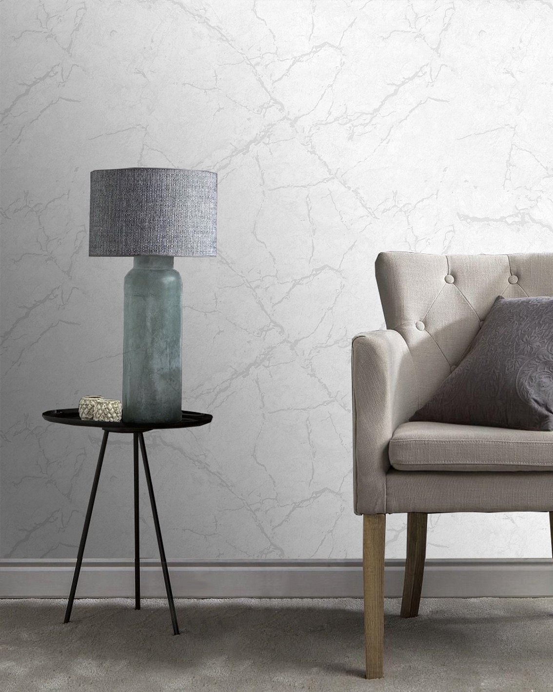 В ней сочетаются брутальность и нежность, грубость и изящество, цемент и дерево. На обойном полотне, имитирующем серо-песочную бетонную стену, распускают золотую листву ветви молодого дерева.