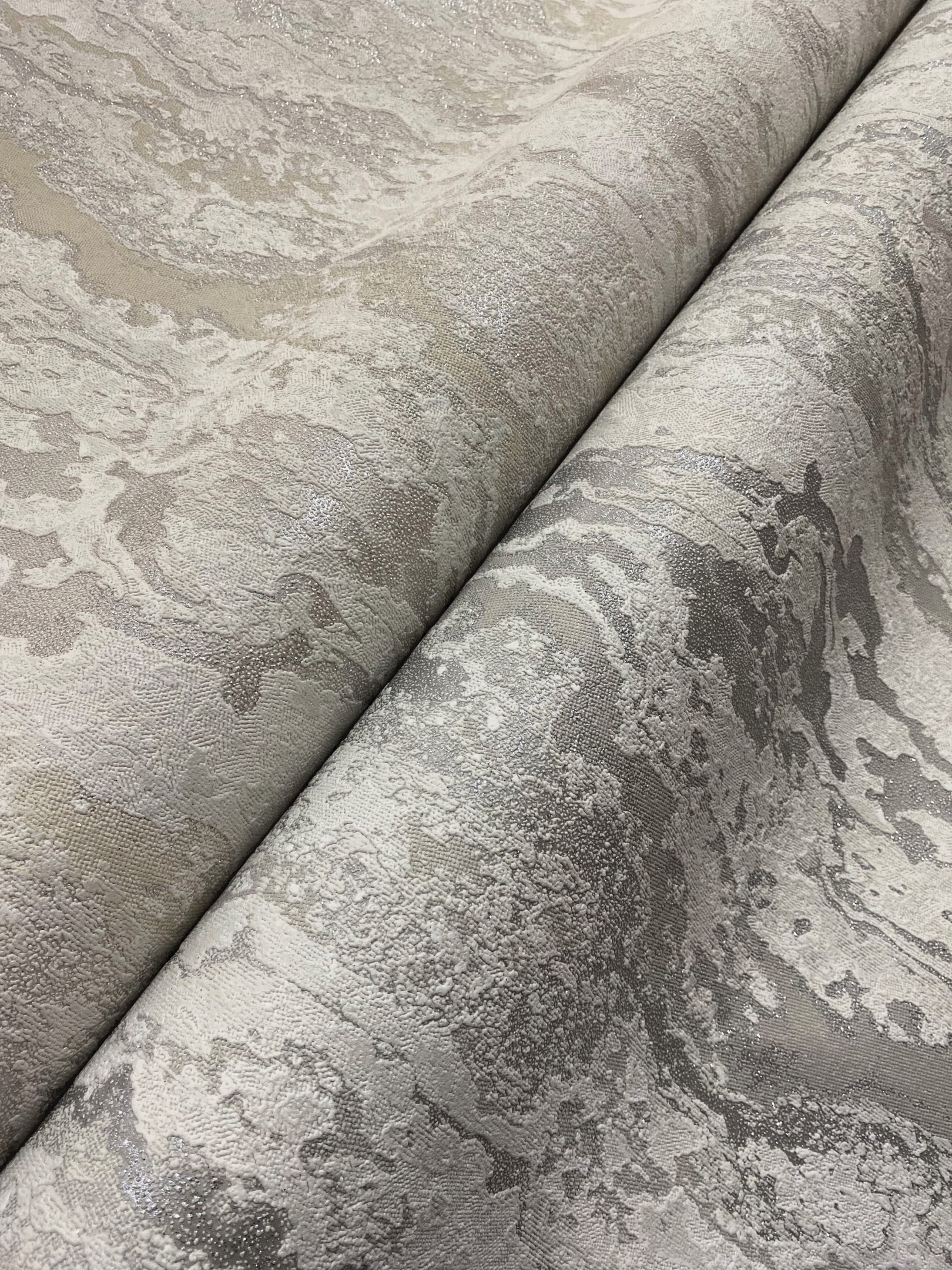 Посмотрите на эту великолепную природную фактуру полотна, мягкие переходы, натуральные оттенки серого, песочного, а также благородные металлизированные эффекты!🏔