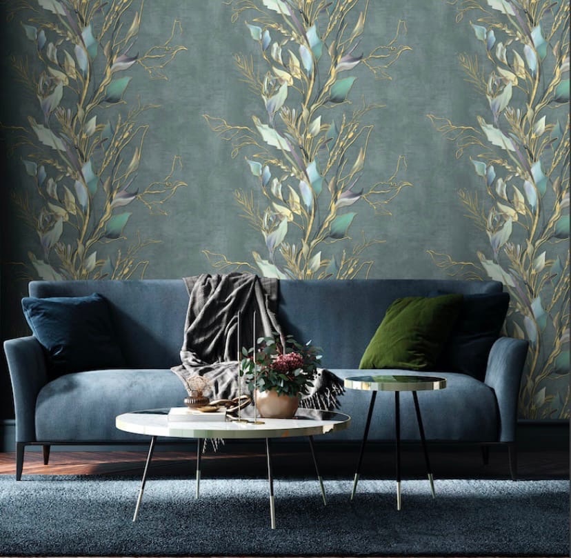 Рисунок выглядит, как нежное, стремящиеся ввысь растение, с акварельными листочками и объемным контуром. Когда Вы поклеите несколько полотен, принт станет напоминать своеобразный полосатый узор.